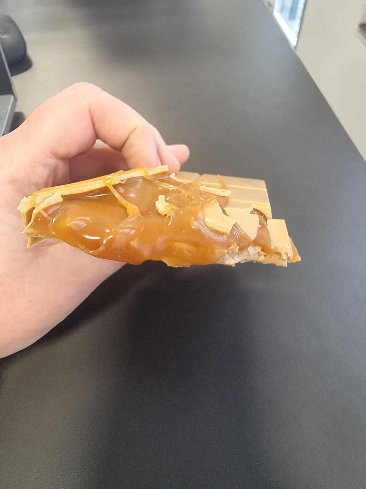 Dupla karamell élmény: kívül karamellizált fehér csokoládé, belül krémes karamell töltelék.